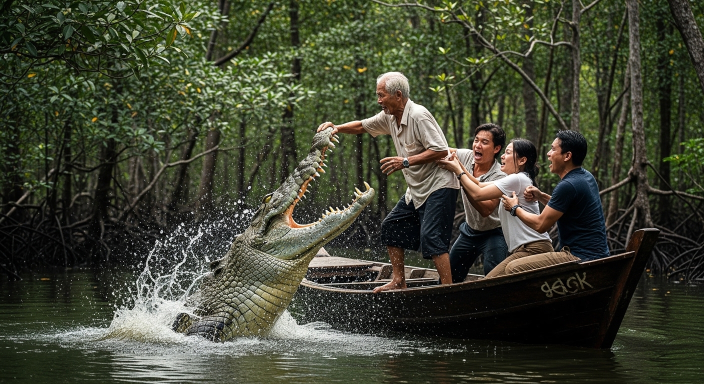 Nang makarating kami sa bahagi ng ilog kung saan kilala ang mga buwaya, doon nagbago ang lahat. Ang manugang ko—isang babaeng laging maingat at magalang—lumapit nang malapitan sa akin, ang kanyang hininga ay mainit sa aking tenga. “Bumaba tayo sa mga buwaya, hindi ba?” bulong niya, may kakaibang tamis na hindi ko mapagkatiwalaan.
